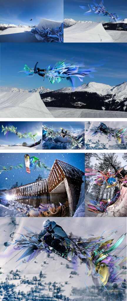 Démarche créative qui s’articule autour de courbes dynamiques et de lignes en expansion, évoquant le futurisme, le mouvement, la vitesse et l’agitation voire l’excitation. Ces éléments constituent le lexique du style des Structures ATOME